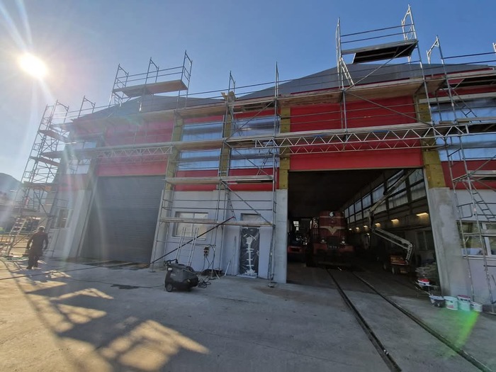 Oprava fasády staré haly.Za plného provozu,požadavek klienta byl zachování průjezdu.
